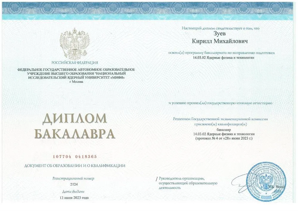 Бакалавриат - "Ядерные физика и технологии".